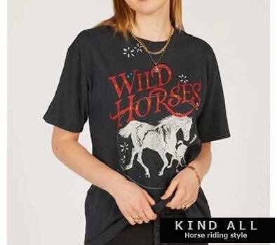 乗馬 ブラックTシャツ 親子馬 馬術 トップス