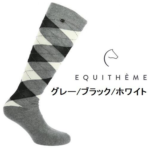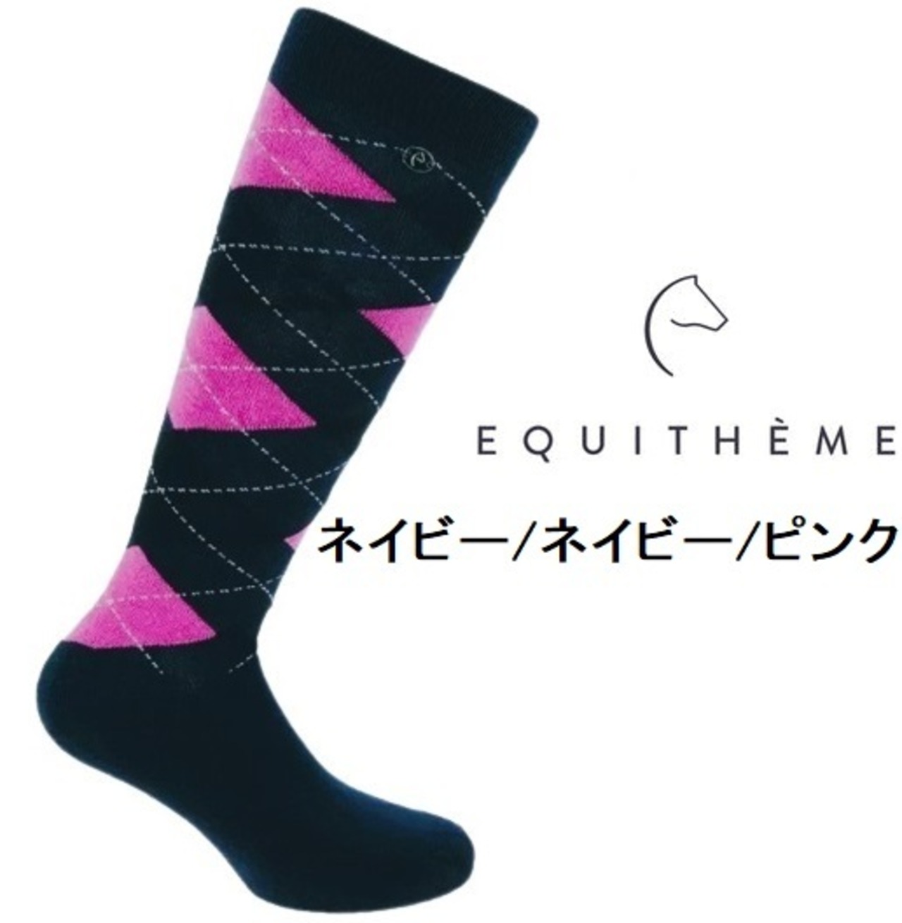 EQUITHÈME ロゴプレート付きアーガイル ライディンソックス 乗馬靴下 乗馬 馬術